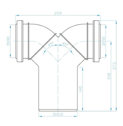 - Naziv robe: Priključak za WC dvostruko koleno 2×90-DN110/KK99A00